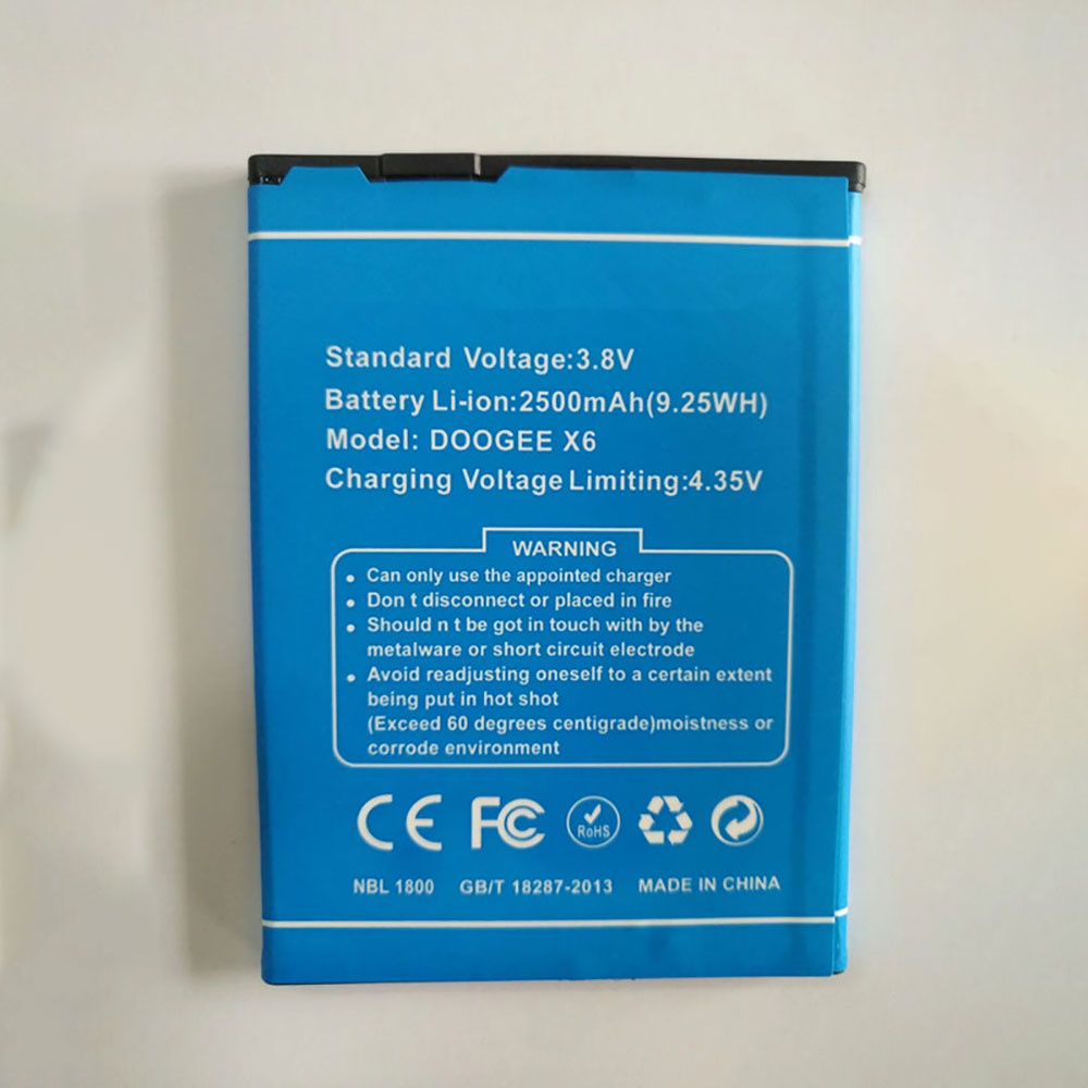 Toutes nos Doogee X6 batterie pour DOOGEE X6 & DOOGEE X6 Pro Smartphone sont neuves et 100% compatibles. Où que vous soyez, ce 2500mAh Doogee X6 batterie de portable-batterie.fr vous asssure de pouvoir utiliser votre aussi longtemps que possible. Dans le cadre de notre procédure qualité ISO 9001, nous procédons à des contrôles qualité réguliers sur l'ensemble de nos produits.